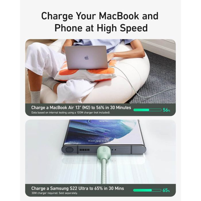 Today's Deal is 240W USB-C to USB-C Cable Pack of 2Pcs 1.8m by Anker Green