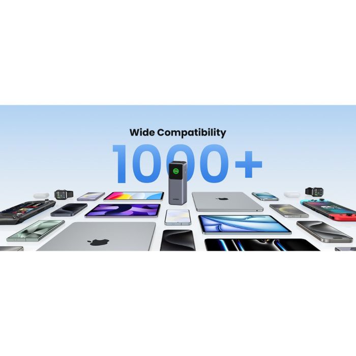 - Universal Compatibility supports MacBook, iPhone, iPad, Galaxy, Switch, Steam Deck, AirPods, and smartwatches