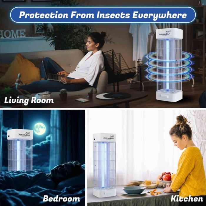 Notify meALSHABAH Original White Insect Killer – an effective and durable device that eliminates all types and sizes of flying insects. It can be wall-mounted or placed on the floor, covers an area of 25 square meters