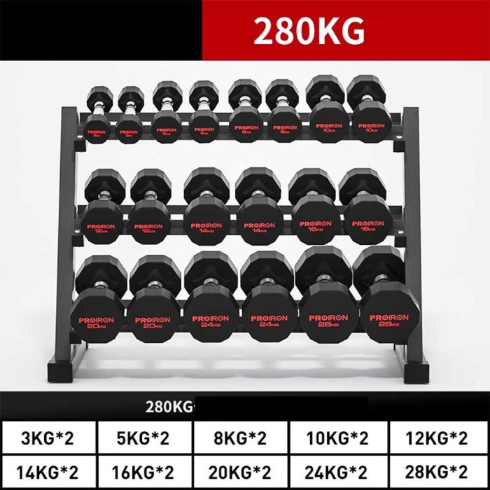 - 280KG Dumbbell Set with 3-Layer Steel Rack