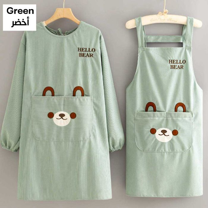 - 2Pcs Bear Design Kitchen Apron Set for Women