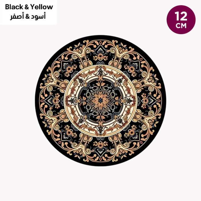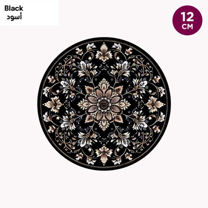 - Bohemian Luxury Insulated Round Placemat and Coaster 2Pcs - 12 cm - Black