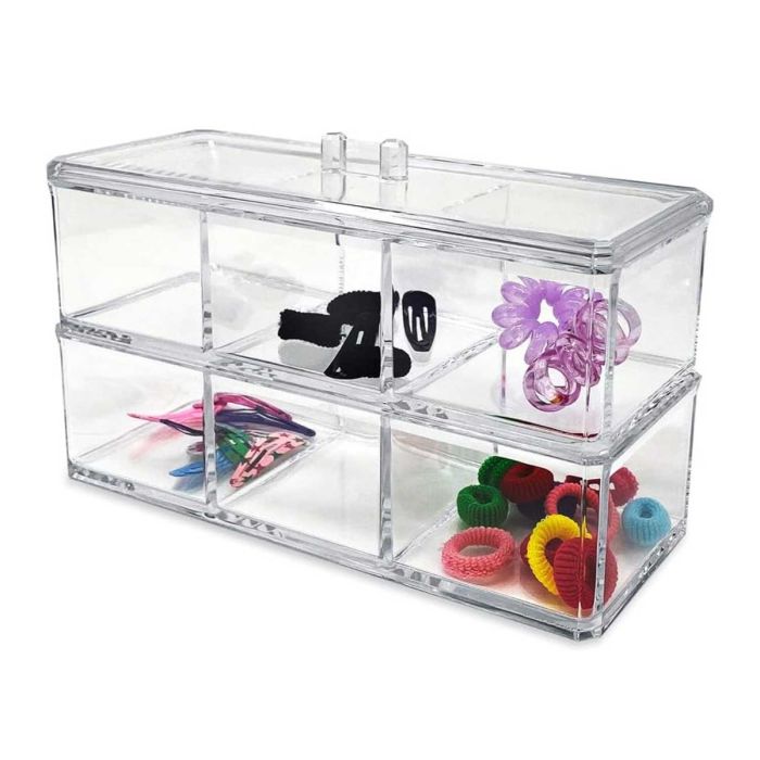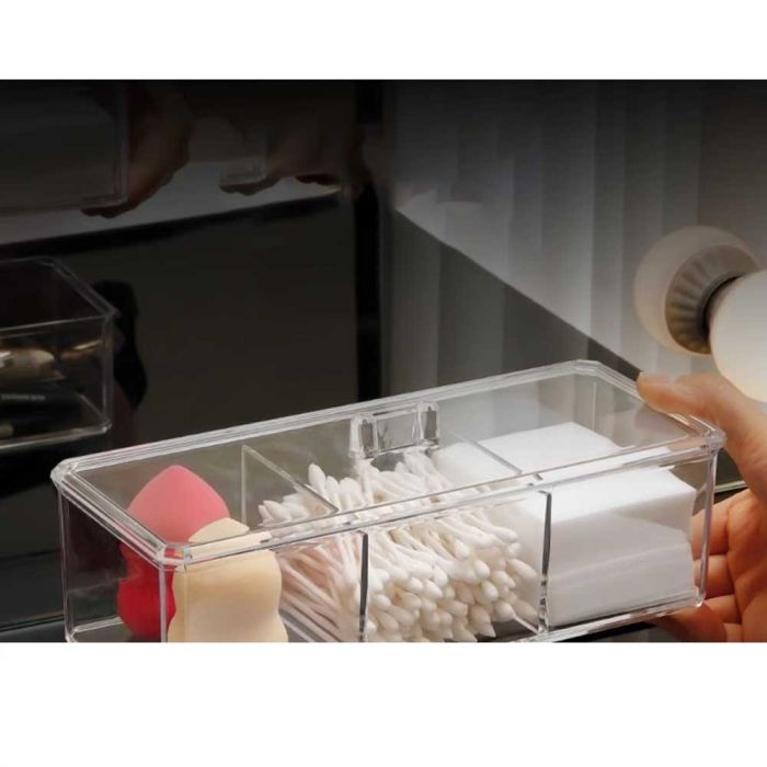 This transparent makeup organizer with lid provides an elegant way to keep your essentials tidy and clean. Its clear design allows you to easily view and access contents, while the lid protects items from dust and maintains them in excellent condition. Perfect for cosmetics, accessories, or small tools, it is lightweight, durable, and a modern addition to your daily routine.