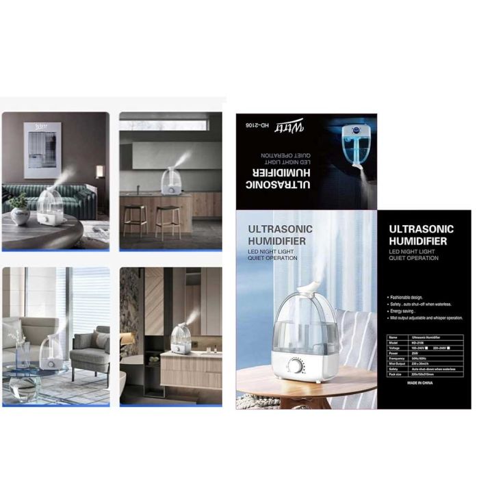 - Ultra-quiet < 35 dB ultrasonic mist – ideal for nighttime use