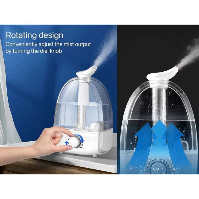 This sleek, easy-to-use humidifier features ultrasonic mist technology and a simple dial control for easy adjustment. Its large tank minimizes refills, and the auto shut-off ensures safety when the water runs out. Ideal for soothing dry skin, easing coughs, and improving air quality while you sleep, work, or relax