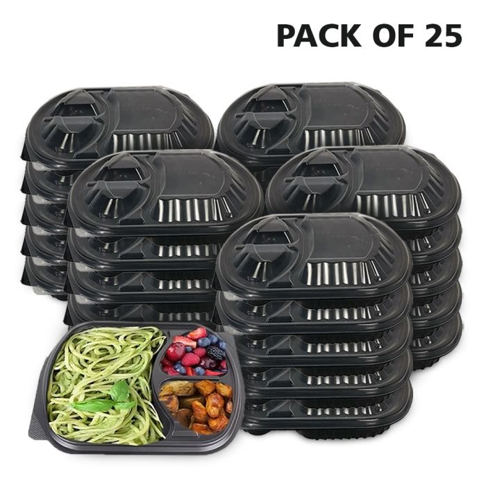 - 3 Compartment Disposable Food Container with Lid - 25Pcs