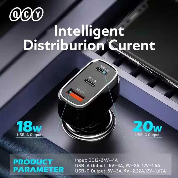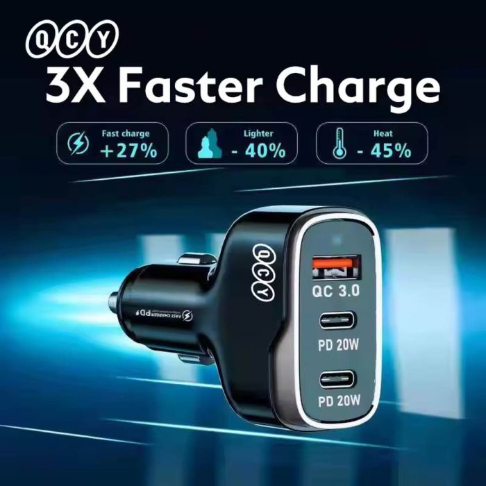 - 3 in 1 Fast Car Charger 40W PD QC 3.0 Fast Charging by QCY