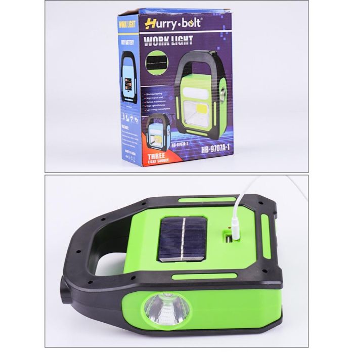 This flashlight features a 3-in-1 design combining front, side, and COB lighting, making it ideal for use as a camping lantern or flashlight. It supports solar or USB charging, ensuring light is available anytime, anywhere. It also functions as a backup battery for charging phones and other devices via the USB port.