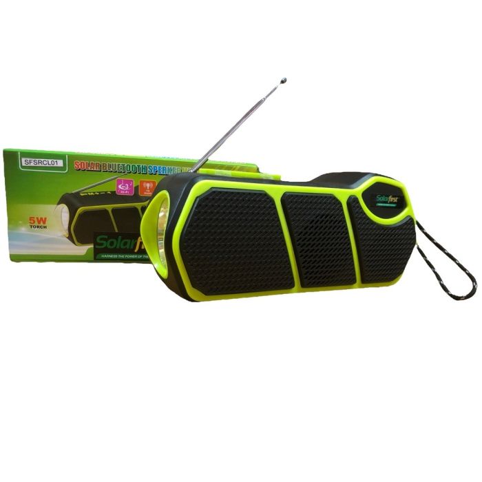 - 3-in-1 Solar Speaker with Flashlight & FM Radio