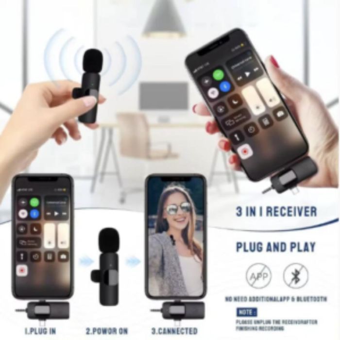 - Device Type: 3-in-1 Wireless Lavalier Microphone