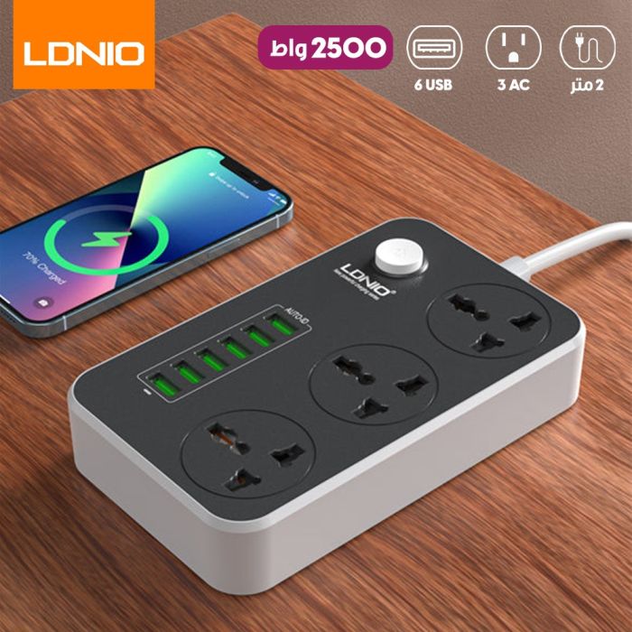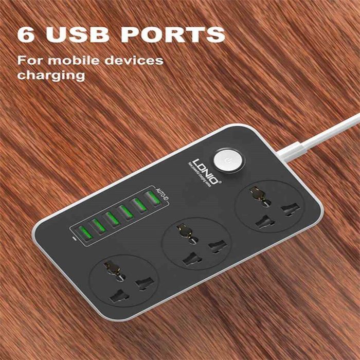 - 3 Sockets Power Extension with 6 USB Ports 2M by LDNIO