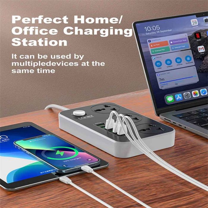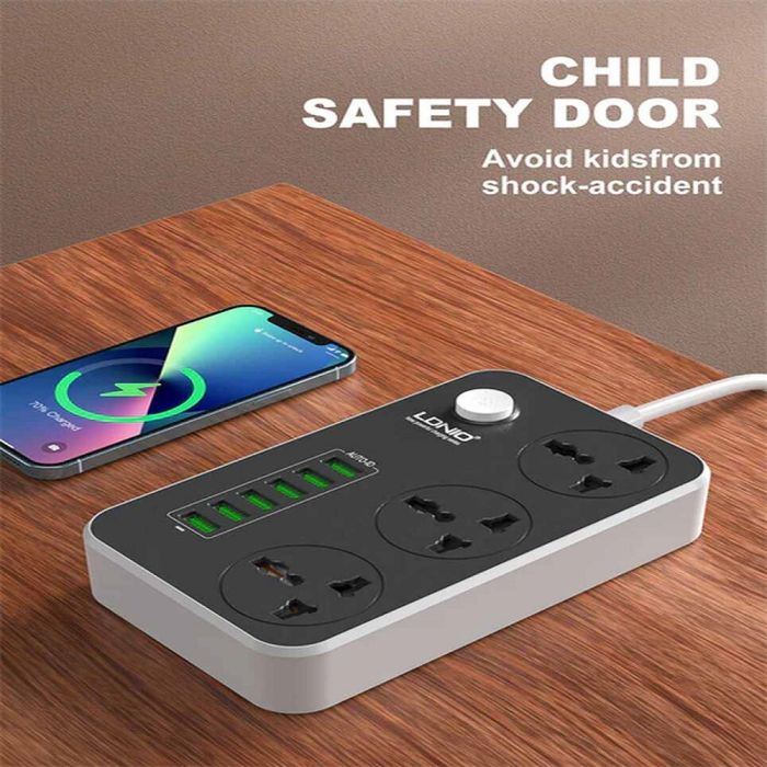 Universal power extension with total power of 2500W and 3.4A USB output. It provides the required power to charge everything you need in one place. It provides 3 AC outlets and 6 USB ports, allowing you to power and charge multiple devices simultaneously. It offers convenience and efficiency with its compact design and reliable power distribution. Protects and charges tablets, smartphones or other devices at fast speeds. Provides premium power protection for your laptop, television, home theater and all other home appliances