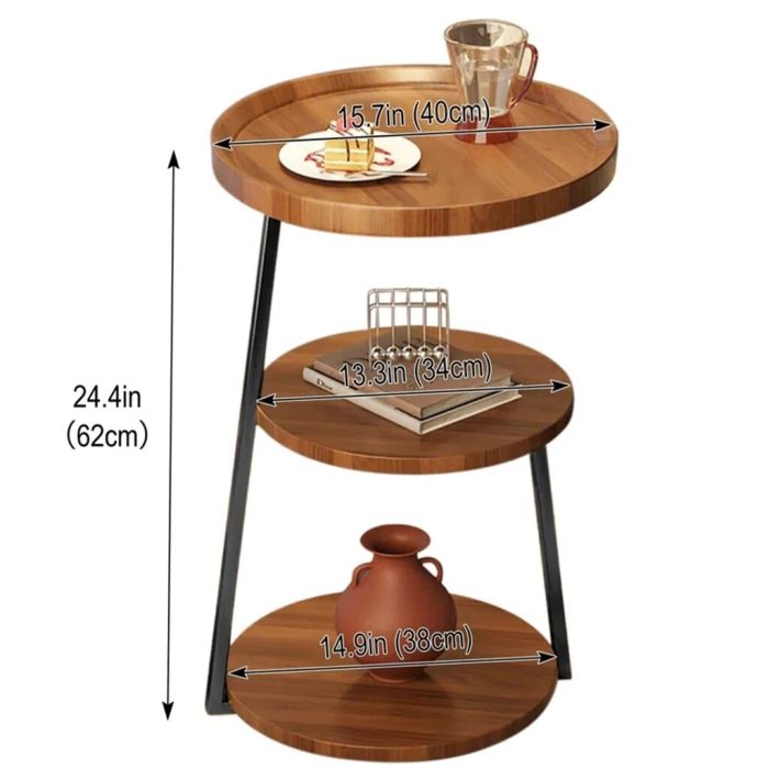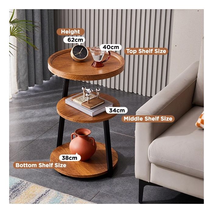 The three-tier design provides convenient storage for daily essentials while maintaining a minimalist look that complements any home décor. With different shelf sizes for versatile organization, this table is perfect for living rooms, bedrooms, or offices. Its modern round structure adds charm while maximizing vertical space
