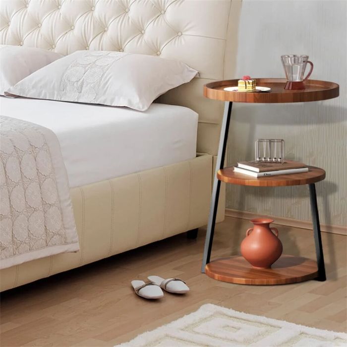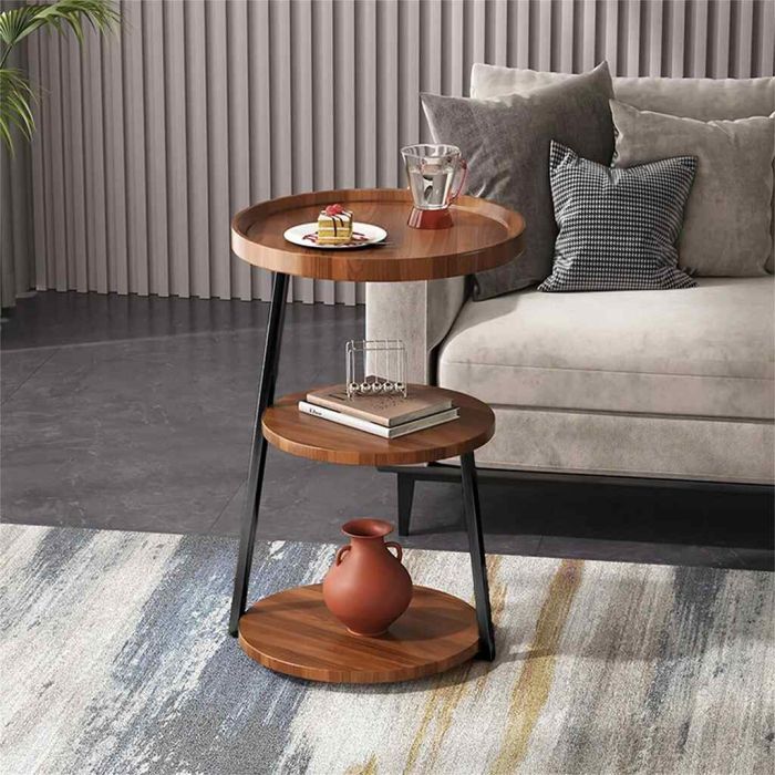 Upgrade your living space with this elegant 3-Tier Round Modern Side Table. Designed with a sleek wood finish and durable metal frame, this compact table offers both style and practicality. Ideal for holding drinks, books, décor, or plants, it fits perfectly beside sofas, beds, or in tight corners