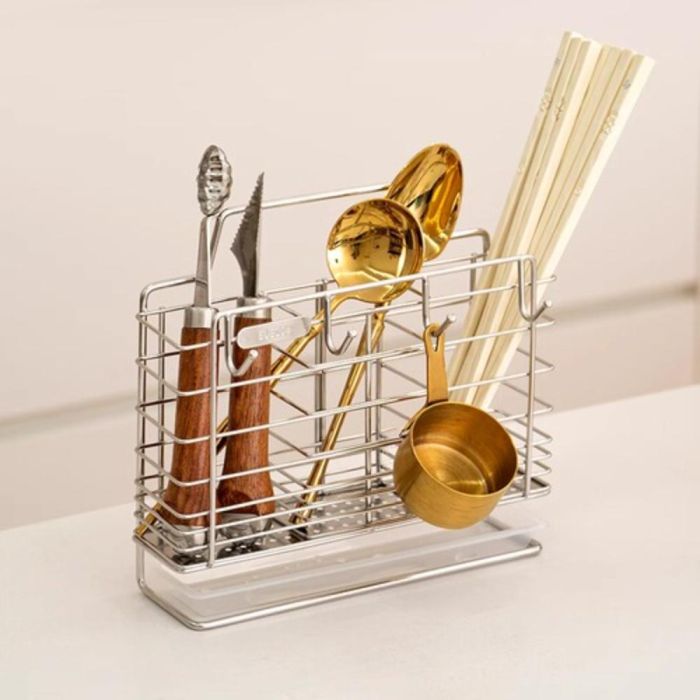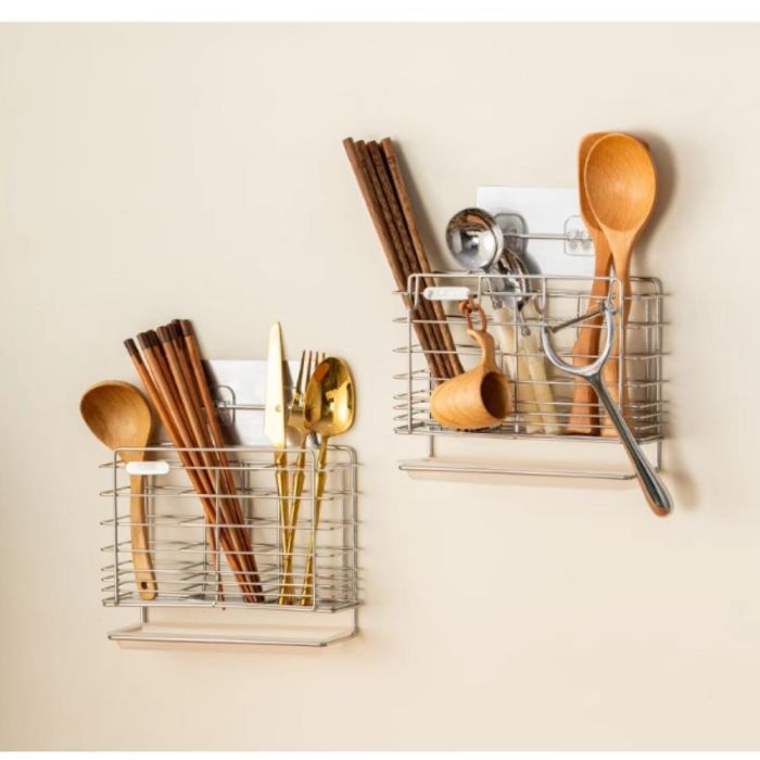 This Chopstick Holder is made from rust-resistant steel, featuring a mesh design for proper drainage, offering neat utensil storage, easy mounting gives you extra space and organized kitchen setup