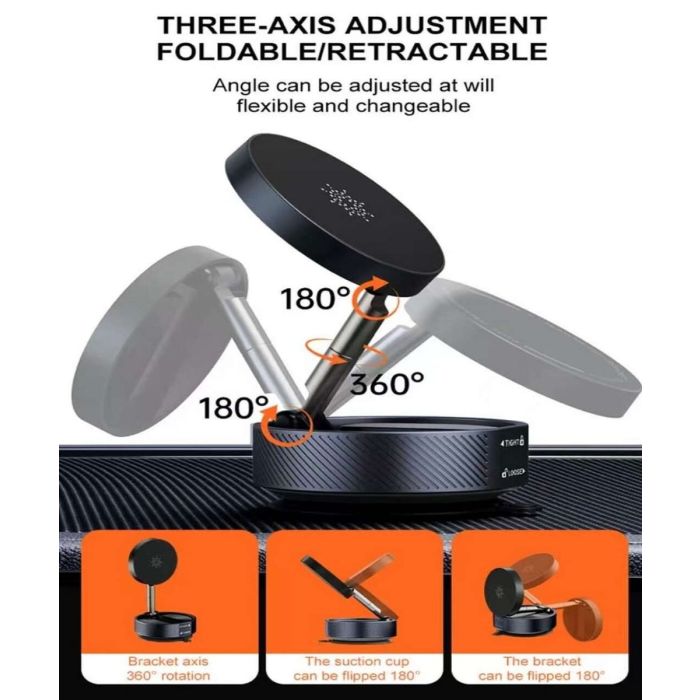 Innovative dual suction cup and magnetic design. This car mount offers convenient solution for holding your smartphone or even your GPS device securely while on the go. Equipped with powerful magnet that provides a secure and stable hold for your device. While the strong suction cup base can be easily attached to any smooth surface in your car. This double model design allows for secure attachment on various surfaces such as car displays, wall tiles, and desks using magnet or vacuum suction, while the extendable arm and damping pivots offer easy angle adjustments for optimally viewing