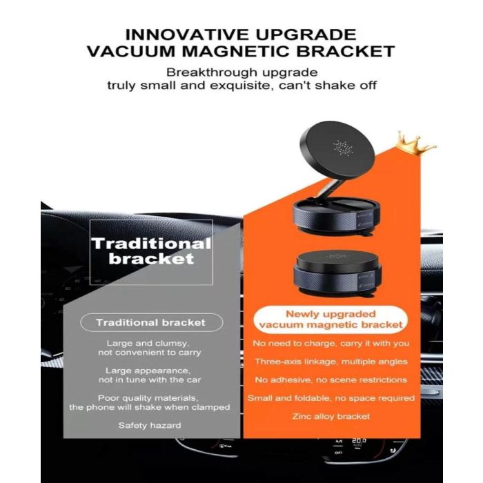 - Double-sided with strong hold using magnetic and vacuum suction sides