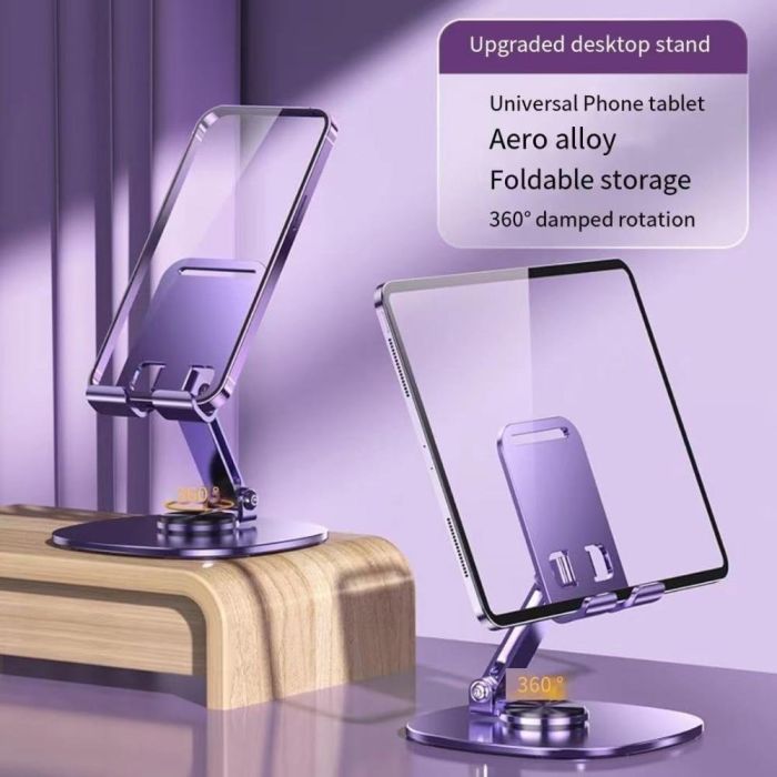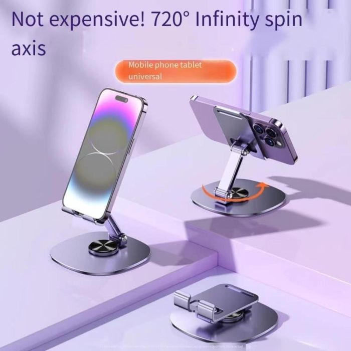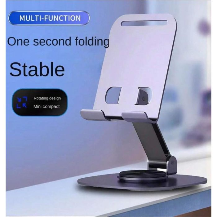This foldable metal phone stand is crafted to offer you elegance and comfort with every use. Its rotating base and stable grip make it perfect for setting your phone or tablet at the ideal angle. The sleek finish adds a refined touch to your space