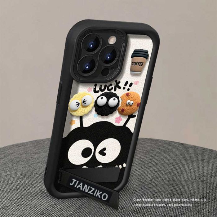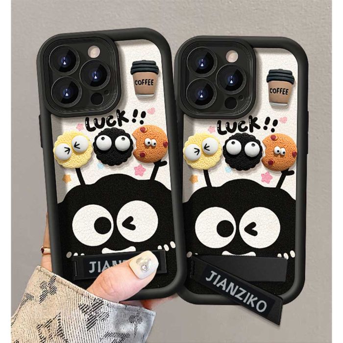 This unique protective cover brings your device to life with its creative and functional 3D design. Featuring a cute cartoon figure on a black cover and a built-in phone stand, this cover is both fun and practical.Today's Deal is 3D Figure Phone Case with Stand for iPhone