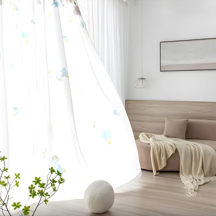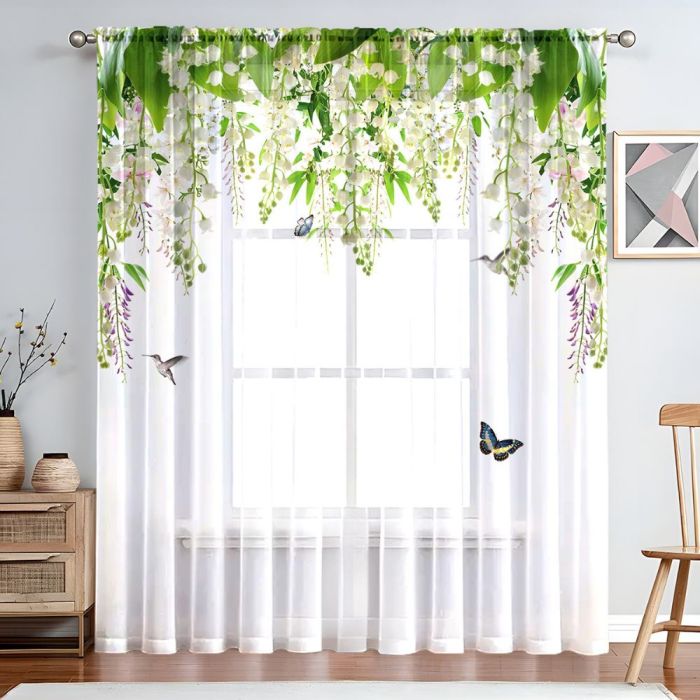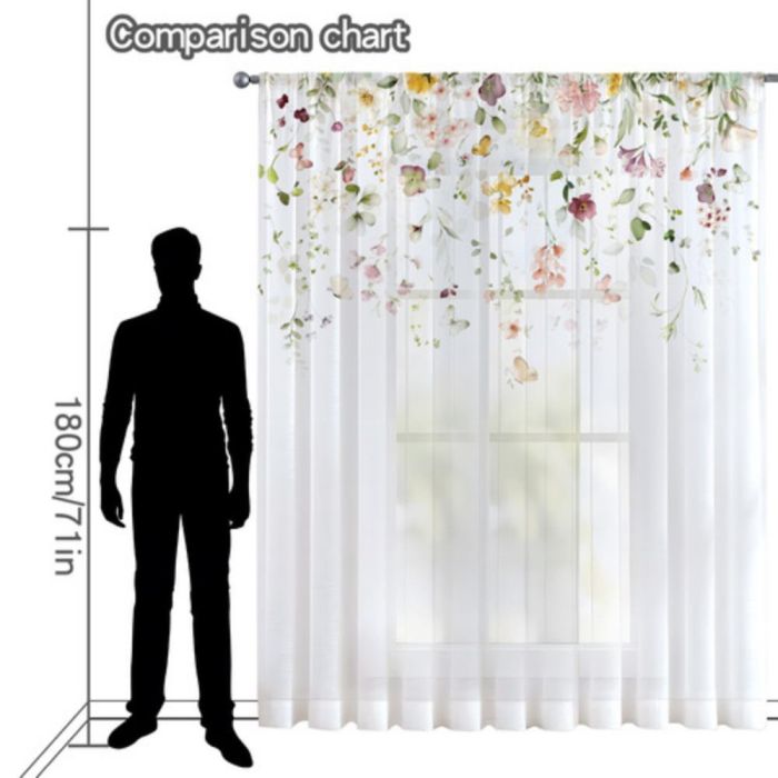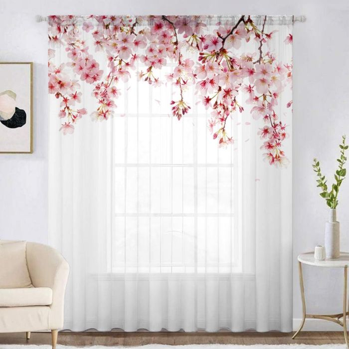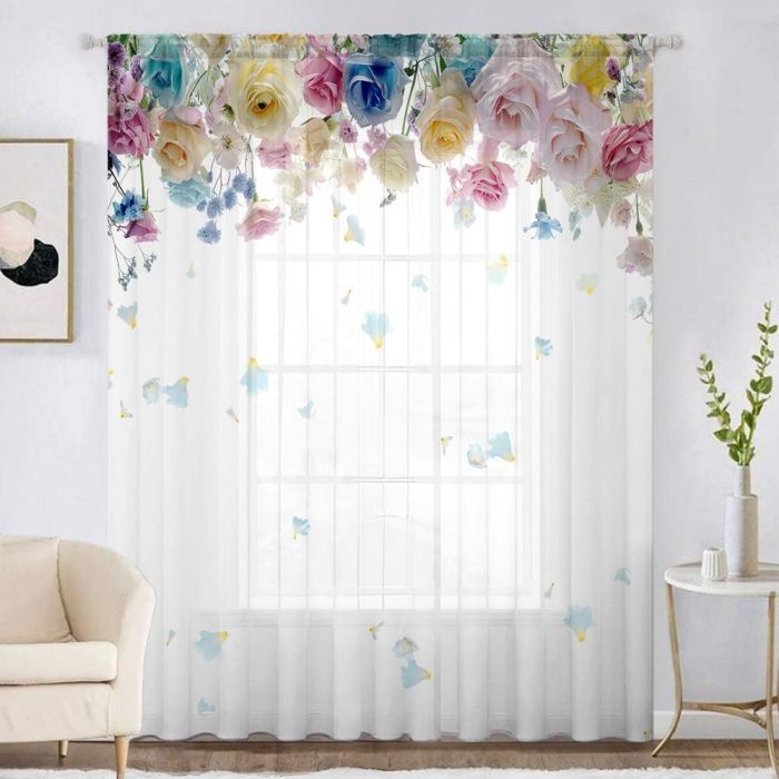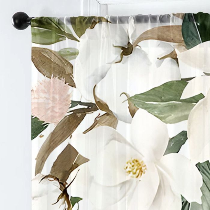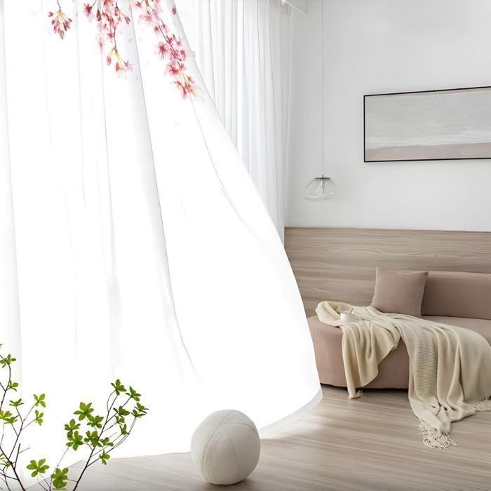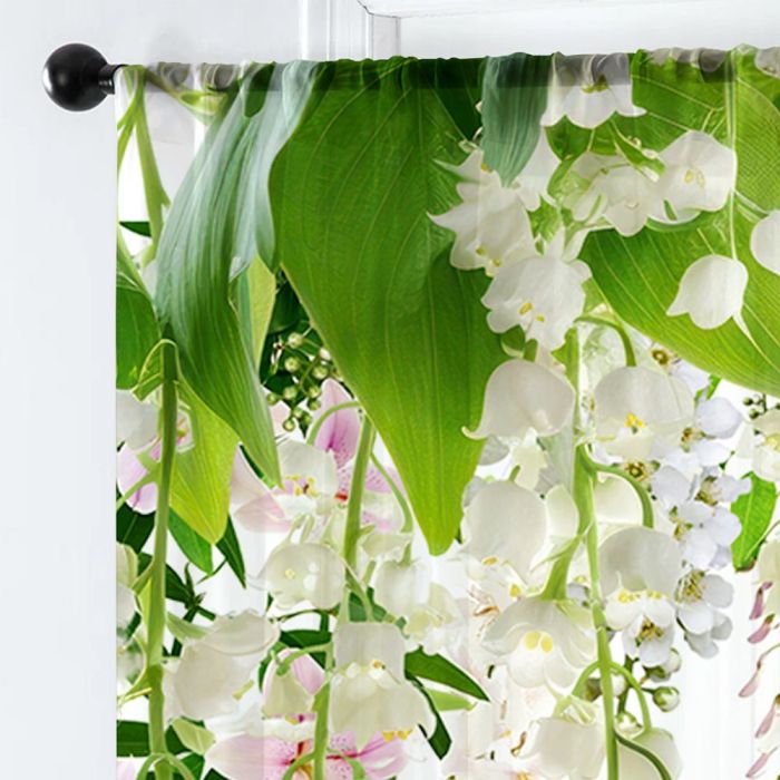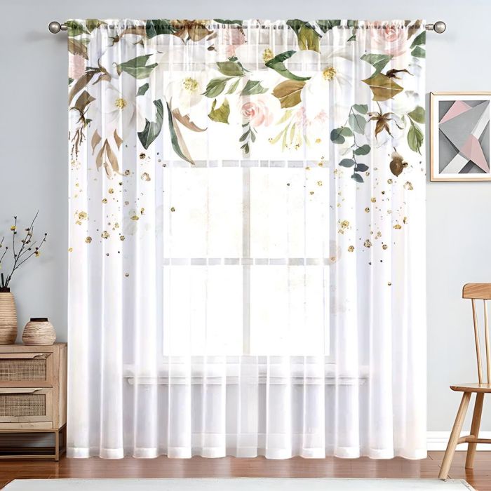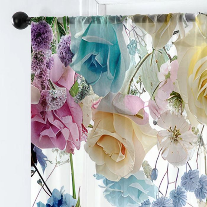 This 3D floral printed window curtain made of polyester, adding an elegant and bright touch to the space, with a soft design that enhances natural light, creates a sense of openness and comfort, suitable for bedrooms and living rooms, and complements the décor with refined style