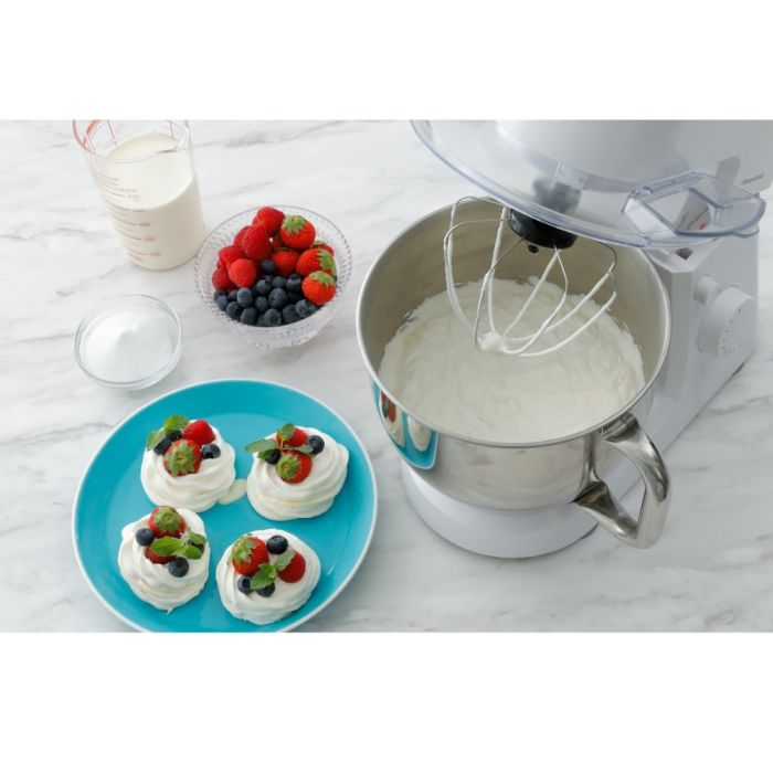 - Includes multiple accessories: kneading hook, stirring blade, whisk, stirring lid, and spatula