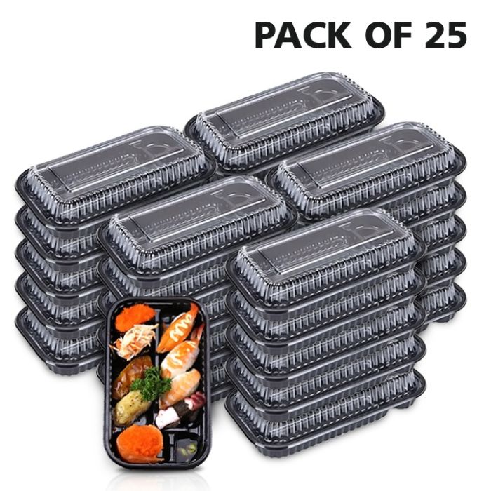 - 4 Compartment Disposable Food Container with Lid - 25Pcs