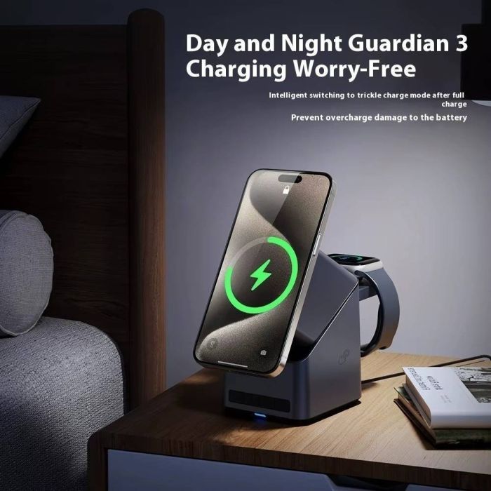 - 4-in-1 charging: phone, Smartwatch, headphones, and digital clock function.