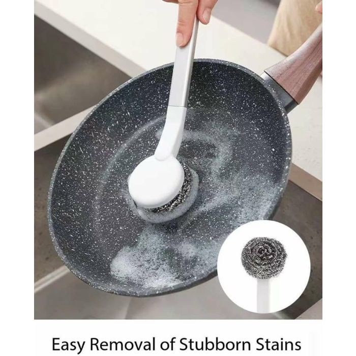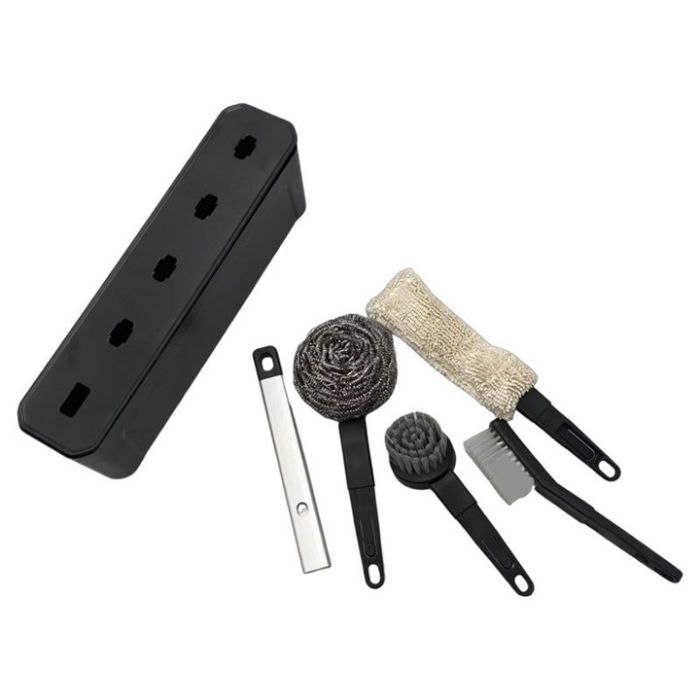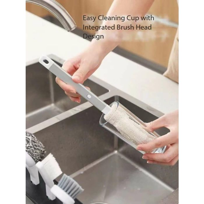 This 4-in-1 kitchen cleaning kit features a multifunctional brush set designed to clean dishes, bottles, and stubborn stains with ease. It includes a detachable aluminum handle and 4 durable ABS brush heads, ideal for everyday use. A smart drain hole design prevents water accumulation on countertops, maintaining cleanliness. It’s designed to fit comfortably in your hand, so it’s easier to hold and use without making your hand tired while scrubbing. Easy assembly & head-switching allows seamless transitions between cleaning tasks. Foam holds soapy lather well and reaches into corners, bottle bottoms, and edges easily. The compact design ensures convenient storage and quick drying after use. Highly recommended for hygienic kitchens and thorough prewash routines