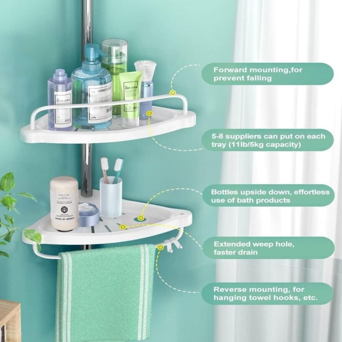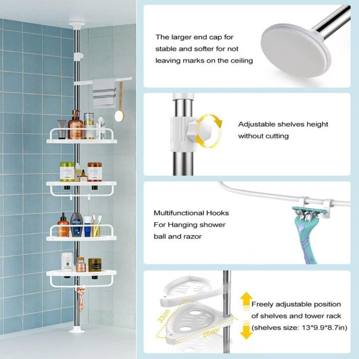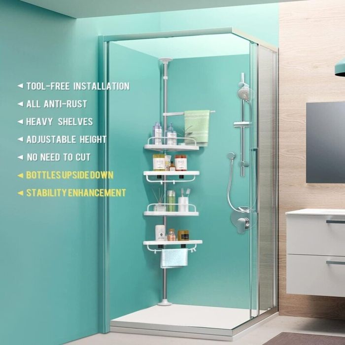 - The shower caddy contains 2 poles and 4 removable trays design that doesn’t accumulate water and bacteria