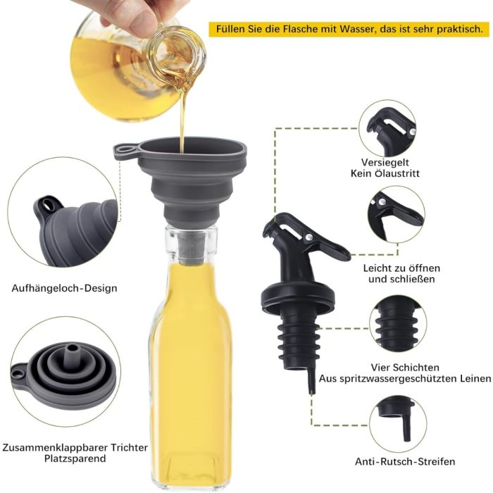 - The design of the vinegar-oil dispenser bottle cap can prevent olive oil from oxidation, drips, keeps the olive oil fresh and prevents dust from falling, In use, our hopes to bring you a comfortable and healthier cooking life