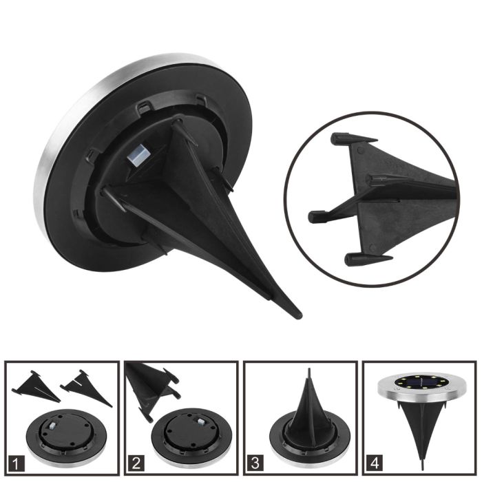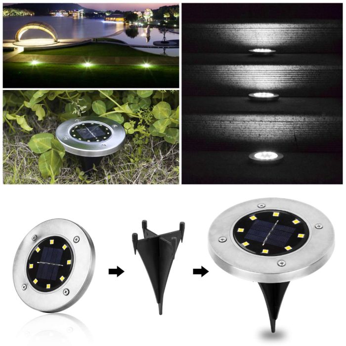 A solar-powered spotlight designed to provide efficient and comfortable lighting for gardens and pathways. Equipped with 8 LED lights delivering 40 lumens brightness and a 600mAh battery, it ensures up to 10 hours of illumination with a full charge in just 6-8 hours. Made from stainless steel with IP65 waterproof protection, it withstands all weather conditions. Features an automatic sensor for nighttime lighting and daytime charging, along with an easy installation design with a single press. Perfect for outdoor spaces, offering sustainability and exceptional performance.
