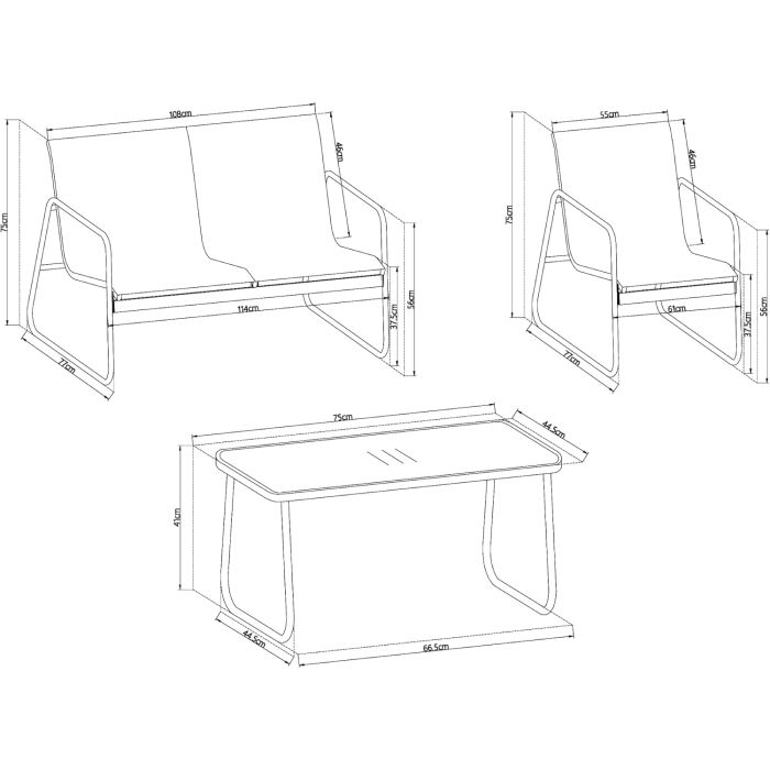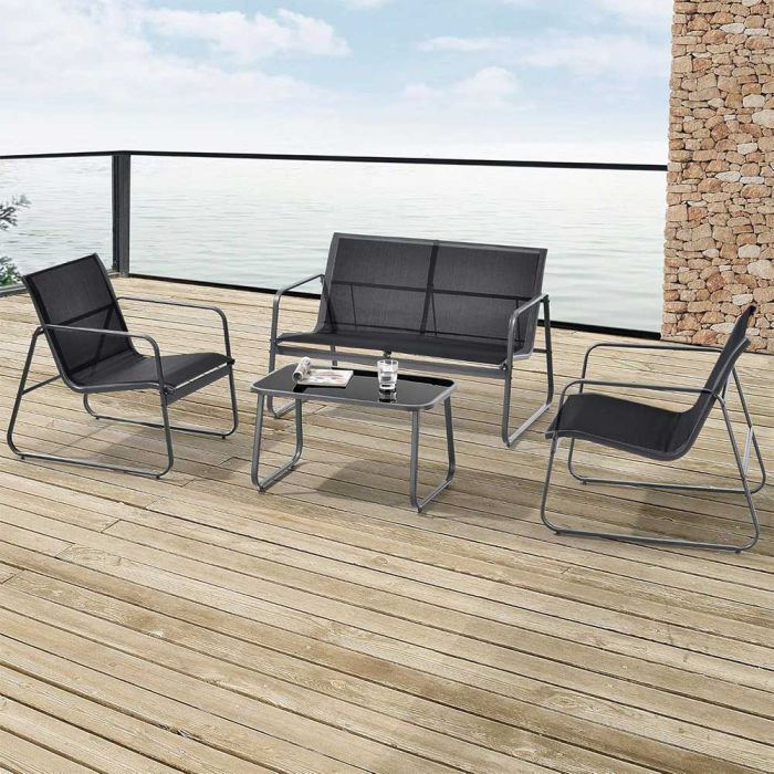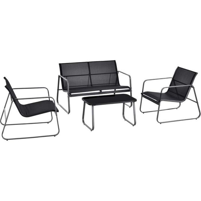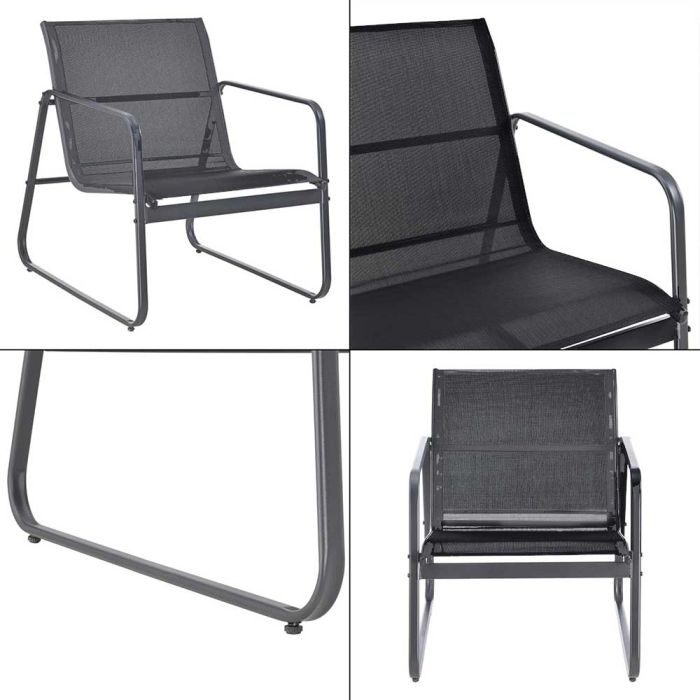 - The garden furniture set consists of a sturdy steel frame, which is designed for long-lasting outdoor use
