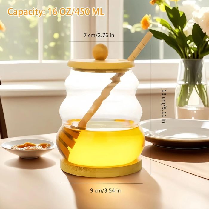 - 450ml Glass Honey Jar Set with Wooden Dipper and Tray