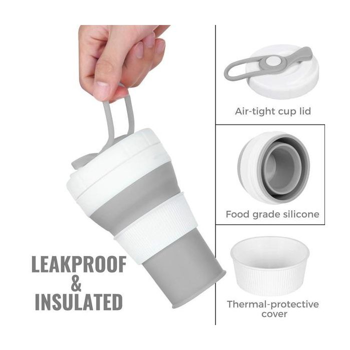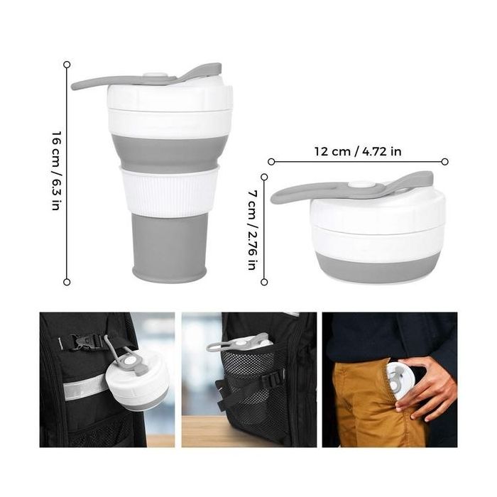 Ideal for outdoor activities and nature, keep yourself hydrated with this practical reusable collapsible coffee cup, made of silicone, BPA free , eco-friendly, suitable for hot and cold drinks