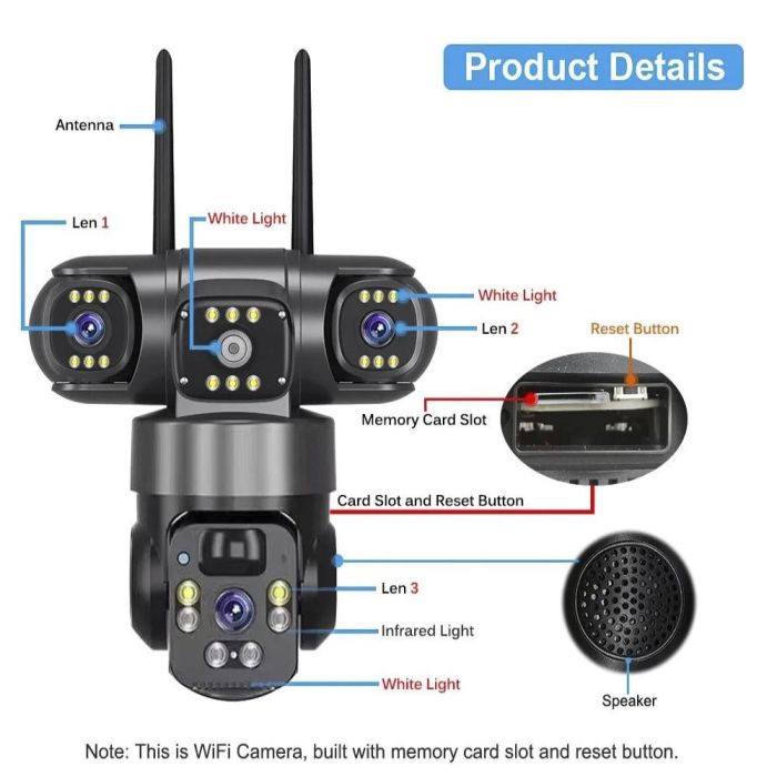 - Coverage: Triple-lens design with 355° horizontal and 90° vertical rotation for wide coverage