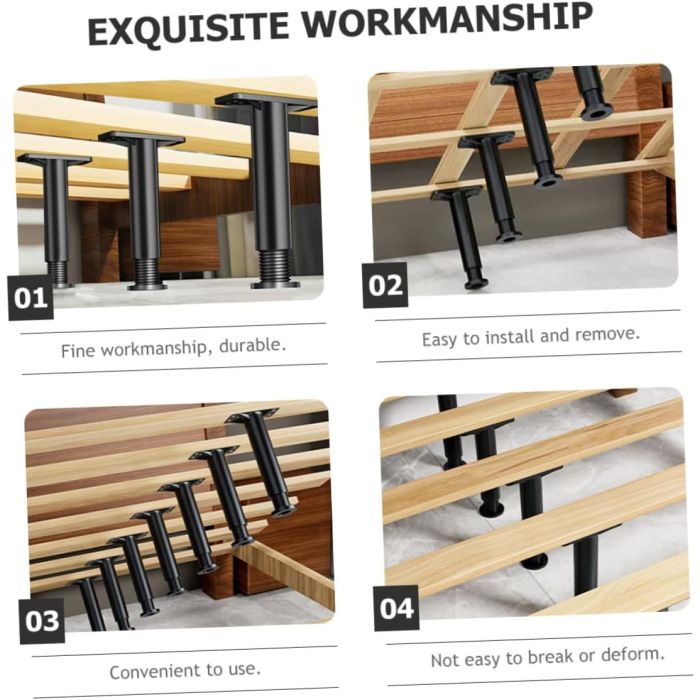 Adjustable bed legs provide an additional 15 to 25 cm of bed height, designed to support the furniture securely and equilibrium.