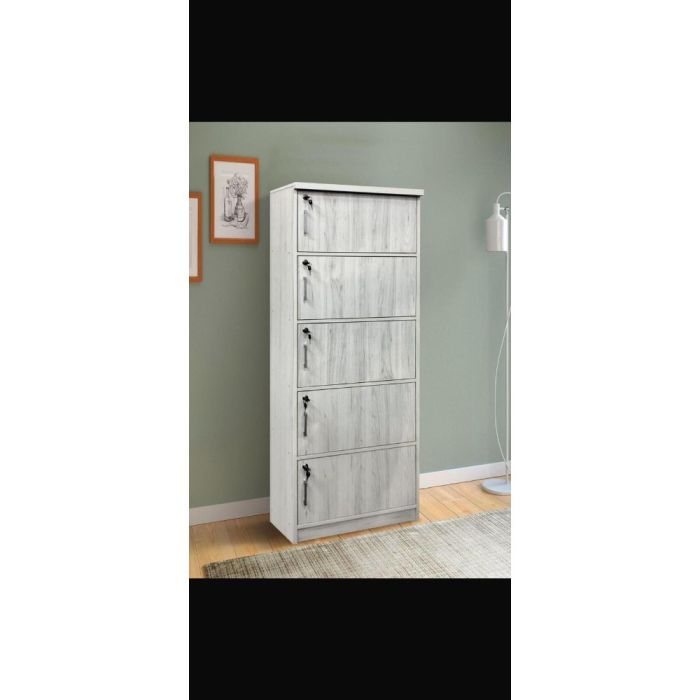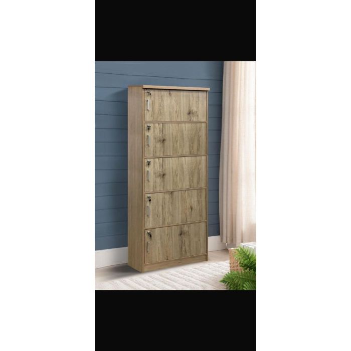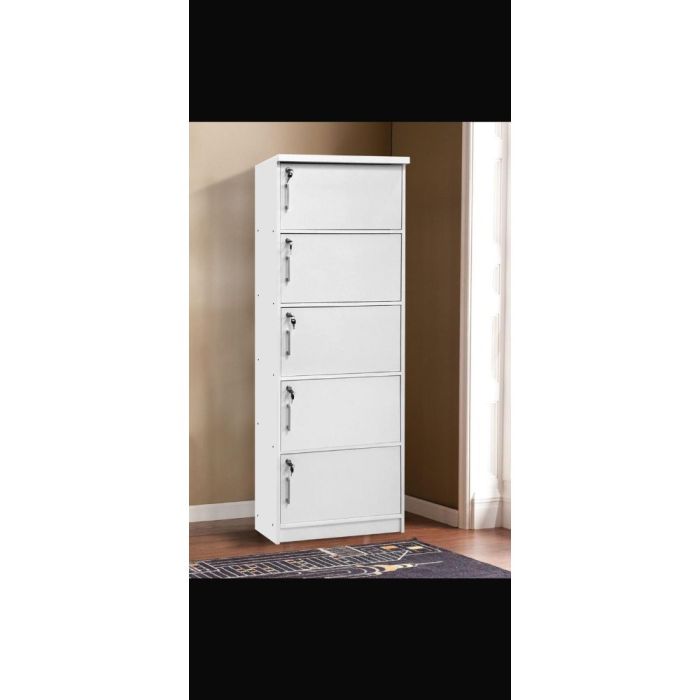 This 5-Door Wooden Storage Organizer with Lock made of MDF wood offers large and organized storage space, features a practical and modern design suitable for home and office use, equipped with secure locks, and built with a sturdy structure for reliable everyday performance