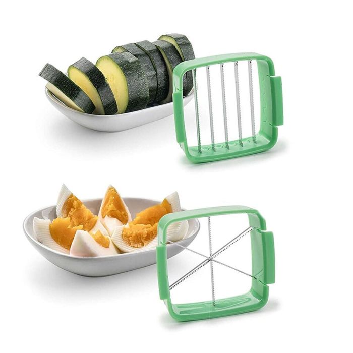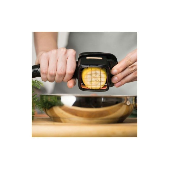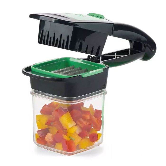 Chop or julienne fruits, vegetables, cheese, fresh herbs, hard cooked eggs, and more in seconds. Dice a fresh tomato for salsa or omelets. Professional and consistent results every time. All of the ingredients transfer instantly from the cutting surface into another container for easier mixing. Stainless steel precision cutting blades. Safe, easy, quick & dishwasher safe