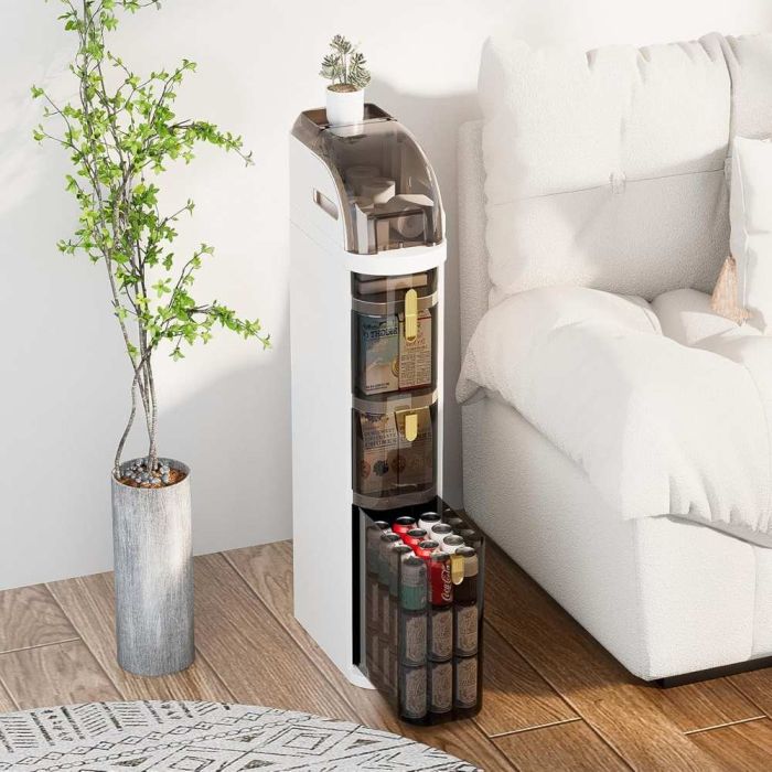 Add a touch of elegance to your space with this organizer. Its slim and practical design offers perfect solution for maximizing narrow spaces. Featuring five versatile spacious drawers that help you neatly arrange cosmetics, office supplies, or bathroom essentials with ease. Made of high-quality, impact-resistant PP plastic that ensures long-lasting durability and stability, making it the ideal choice to keep your belongings handy and organized