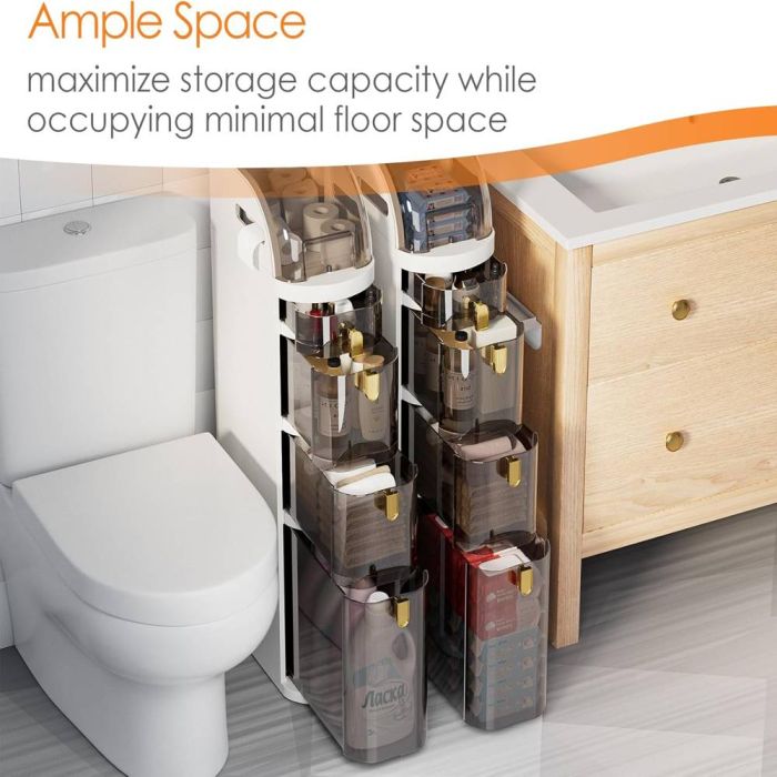 This organizer is distinguished by its smart design that provides ample space. Its compact dimensions and wheels allow it to easily slide into narrow spaces that may seem unusable next to the toilet or closet