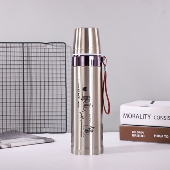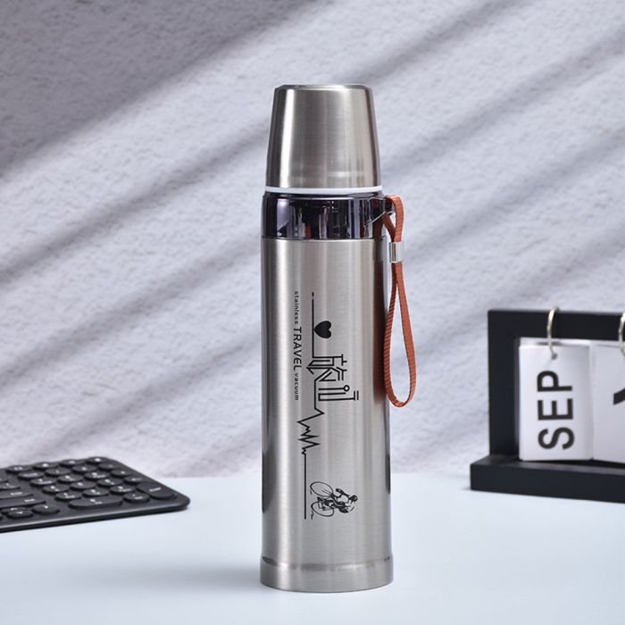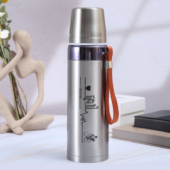 Keep your drinks hot or cold anytime, anywhere with this double-walled insulated tumbler that keeps hot and cold for up to 6 hours. It features a stylish and durable stainless steel design with a leak-proof lid that doubles as a practical drinking cup. A convenient carrying strap makes it ideal for use at the office, gym, travel, or during outdoor activities, making it the perfect companion to keep you refreshed all day long.