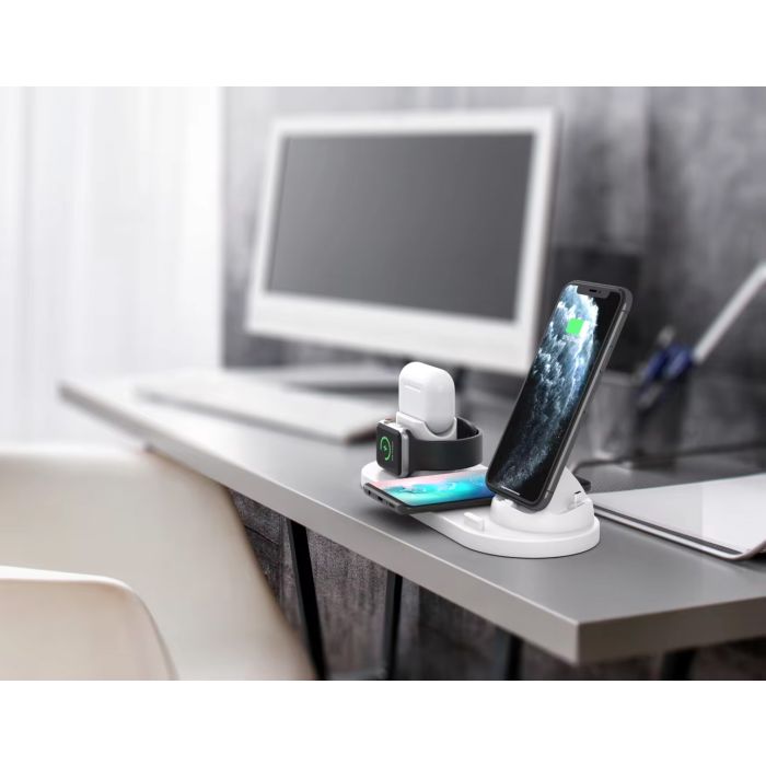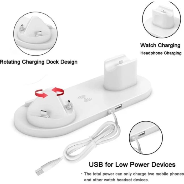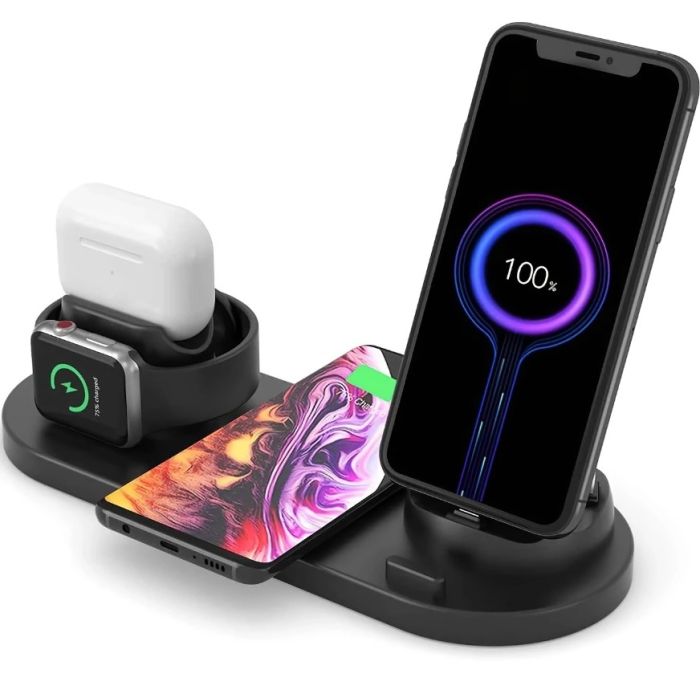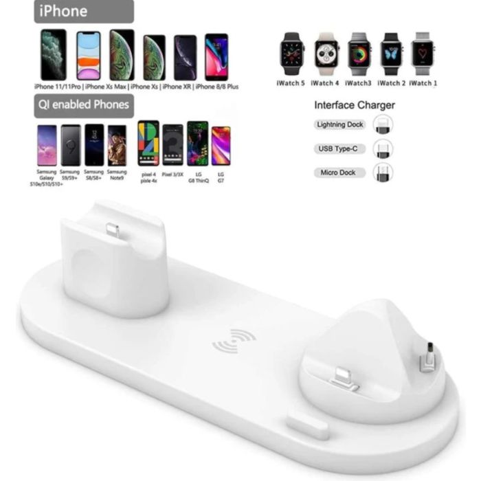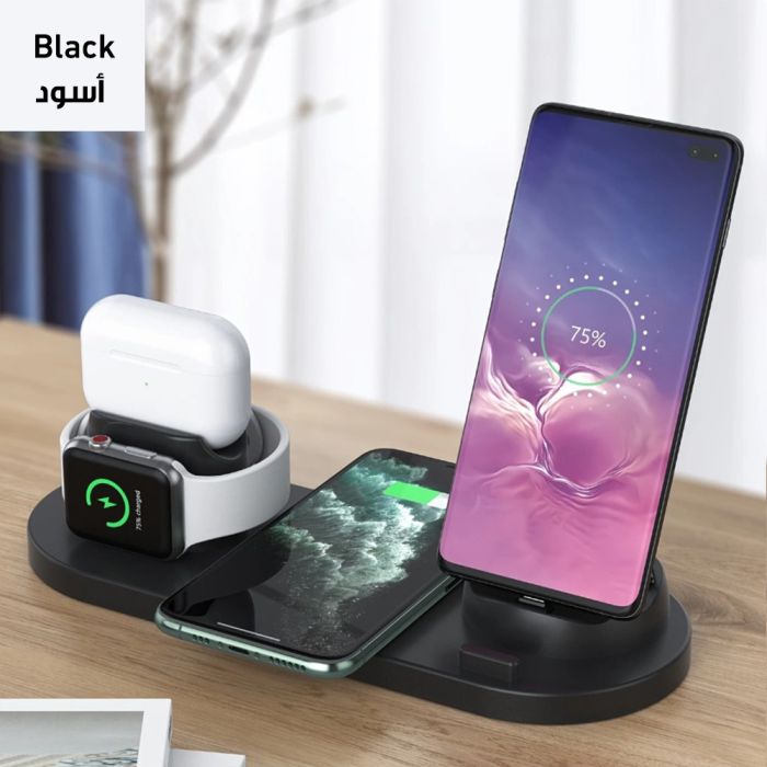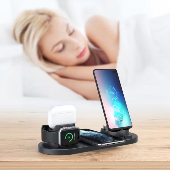 The Universal 6-in-1 Wireless Charging Station is designed to simplify your charging needs. With the ability to charge your phone, smartwatch, and earphones all at once, it saves space and keeps your desk tidy. The 15W fast charge ensures your device's power up quickly, and advanced safety features protect against overcharging, overvoltage, and low tension. Made from ABS + PC fireproof materials, this charging station is both durable and stylish, making it a perfect addition to any home or office.