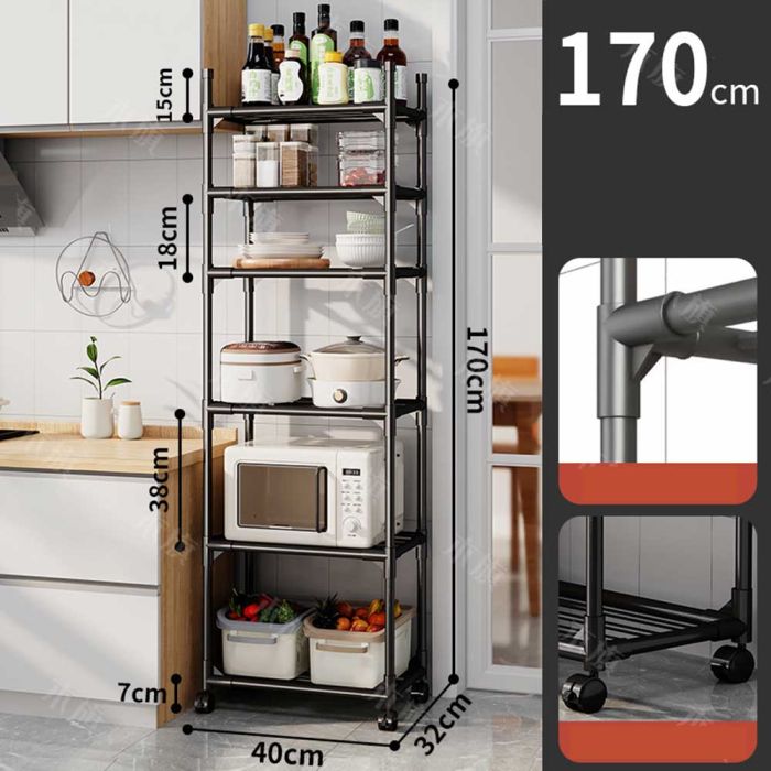 - 6 Layers Metal Multi Function Kitchen Rack with Wheels 170 x 40 x 32 cm