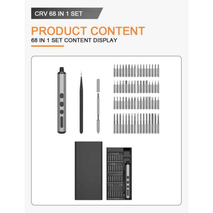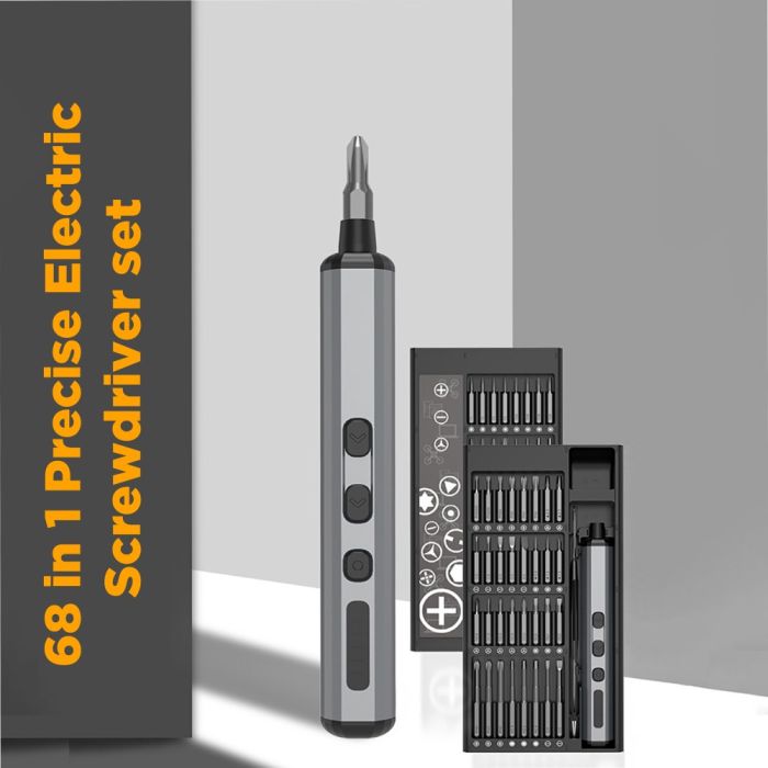- 68-piece precision electric screwdriver set