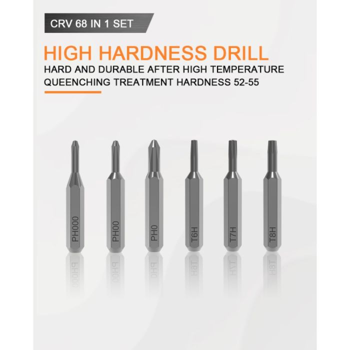 - 64 screwdriver bits in various types and sizes