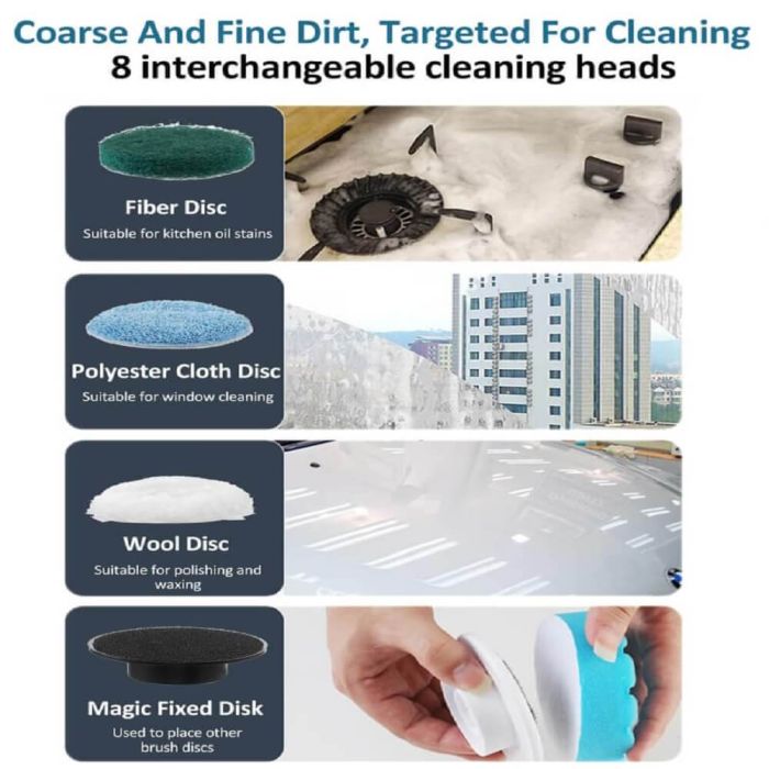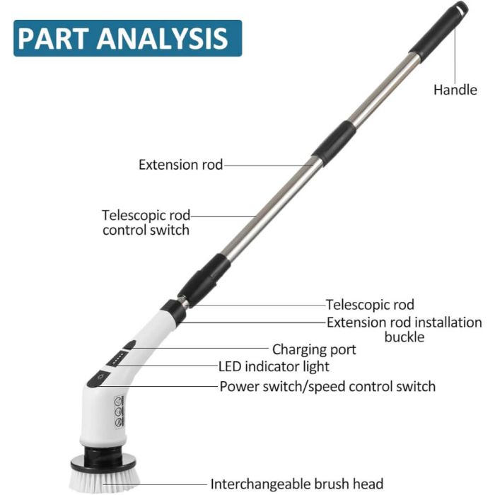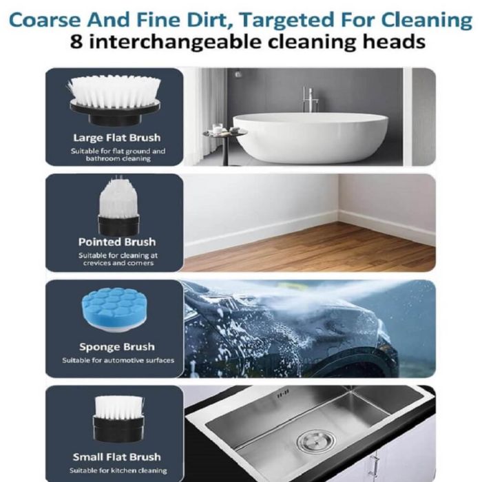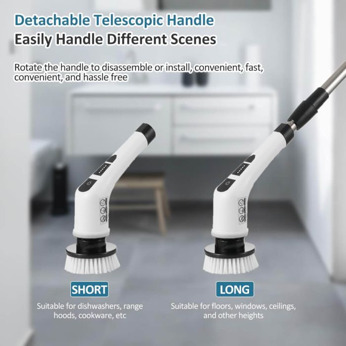 Healthy clean life you can create with a cleaning brush designed for efficiency. Upgrade your cleaning routine with this cordless scrubber that features multiple brush heads for various surfaces. Provides you with an easy way to scrub for multi-purpose uses with powerful clean. saving the effort of daily cleaning. equipped with long life battery for up to 90 min on a single charge, a powerful noiseless motor and extendable handle for hard to reach places