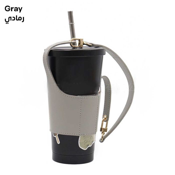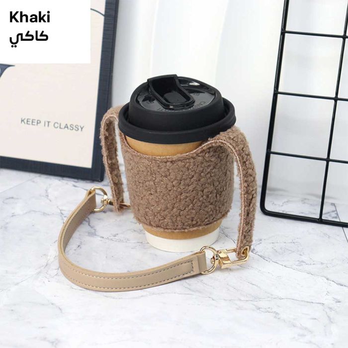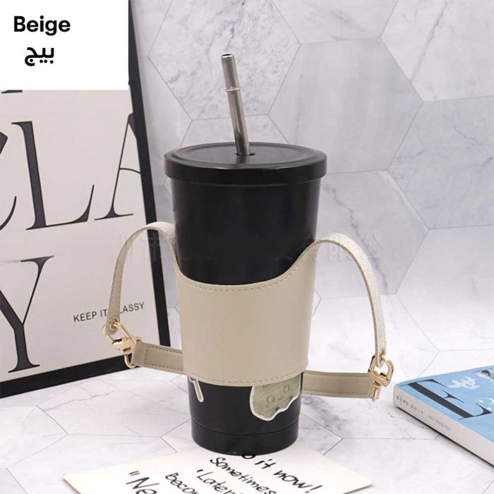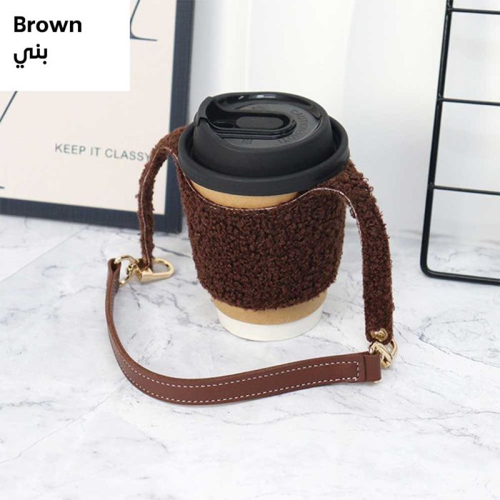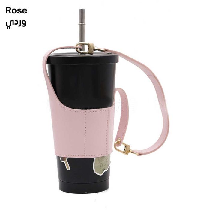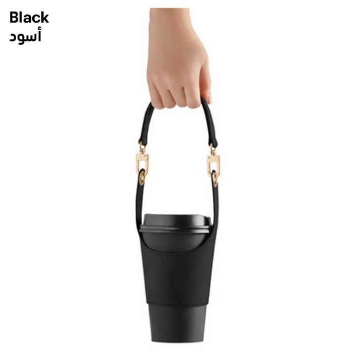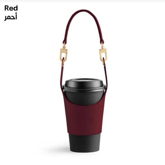 Adjustable leather cup holder crafted from durable materials to provide optimal protection for beverages during transport, featuring a flexible design that fits various cup sizes with ease while offering secure and comfortable grip, adding a touch of elegance with its premium leather finish and combining durability with practicality for everyday use without compromising style.