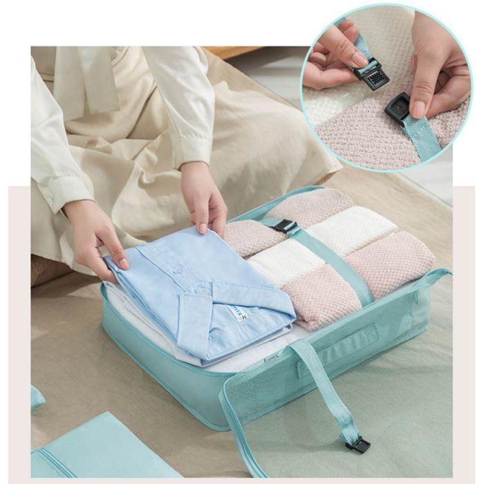 This 7-piece Travel Clothes Storage Set Gives You a Complete Way to Organize and Separate Your Clothes Easily. It Helps You Organize Your Bag in a Neat and Tidy Manner. Strong and Lightweight Materials Ensure Long-lasting Use. Modern Design Makes It Easy to Move and Gives You Greater Comfort While Traveling. Ideal for Long and Short Trips.