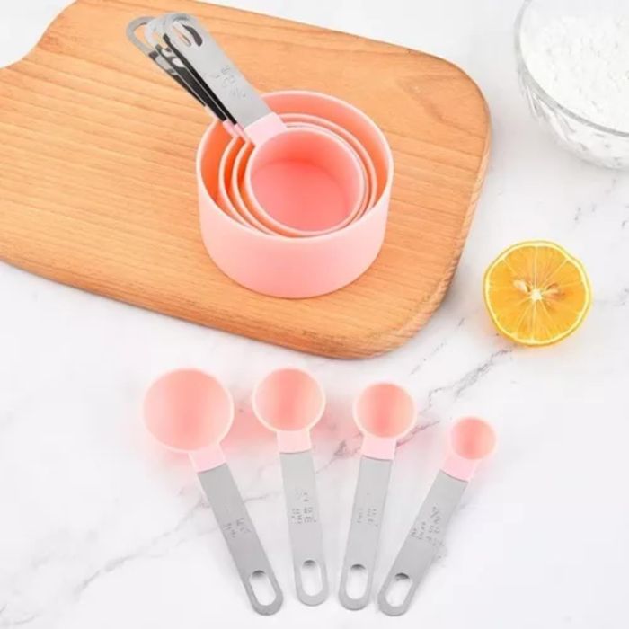 - Complete 8-piece set including four cups and four spoons for all your needs