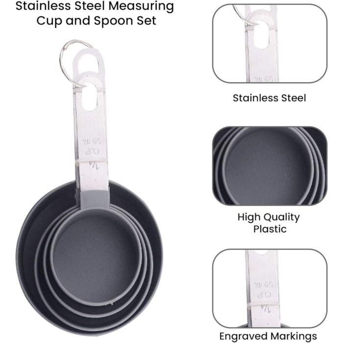 - Features easy-to-read US metric measurements on each stainless-steel handle